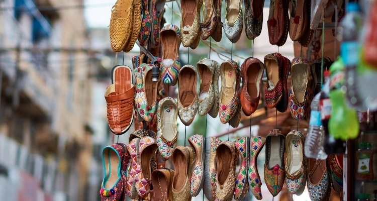 A vibrant shopping destination offering textiles, handicrafts, mojris, and